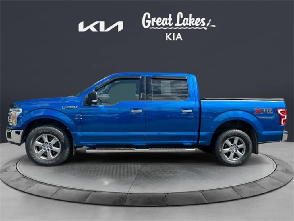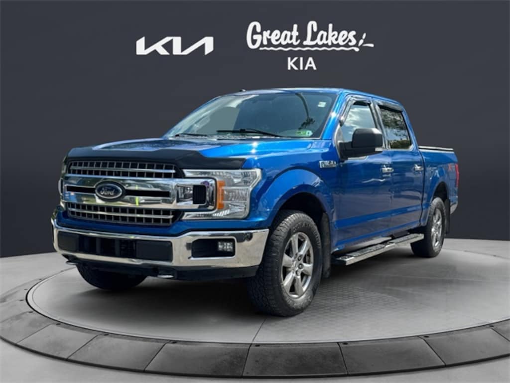 Local Trade, 4WD, Bluetooth/ Hands Free Calling, FREE CARFAX available at greatlakeskia.com, F-150 XLT, 4D SuperCrew, 2.7L V6 EcoBoost, 10-Speed Automatic, 4WD, Lightning Blue, Medium Earth Gray w/Cloth 40/20/40 Front Seat or Cloth 40/20/40 Front Seat, 3.73 Axle Ratio, 4-Wheel Disc Brakes, 6 Speakers, ABS brakes, Air Conditioning, Alloy wheels, AM/FM radio, Brake assist, Bumpers: chrome, CD player, Compass, Delay-off headlights, Driver door bin, Driver vanity mirror, Dual front impact airbags, Dual front side impact airbags, Electronic Stability Control, Emergency communication system: 911 Assist, Exterior Parking Camera Rear, Front anti-roll bar, Front Center Armrest w/Storage, Front fog lights, Front reading lights, Front wheel independent suspension, Fully automatic headlights, GVWR: 6,500 lbs Payload Package, Illuminated entry, Low tire pressure warning, Occupant sensing airbag, Outside temperature display, Overhead airbag, Panic alarm, Passenger door bin, Passenger vanity mirror, Power door mirrors, Power steering, Power windows, Radio data system, Radio: AM/FM Stereo/Single-CD Player, Rear reading lights, Rear step bumper, Remote keyless entry, Security system, Speed control, Speed-sensing steering, Split folding rear seat, Steering wheel mounted audio controls, SYNC, Tachometer, Telescoping steering wheel, Tilt steering wheel, Traction control, Variably intermittent wipers, Voltmeter, Wheels: 17" Silver Painted Aluminum. Priced below KBB Fair Purchase Price! Clean CARFAX. 2018 Ford F-150 Lightning Blue XLT 4WD 10-Speed Automatic 2.7L V6 EcoBoost