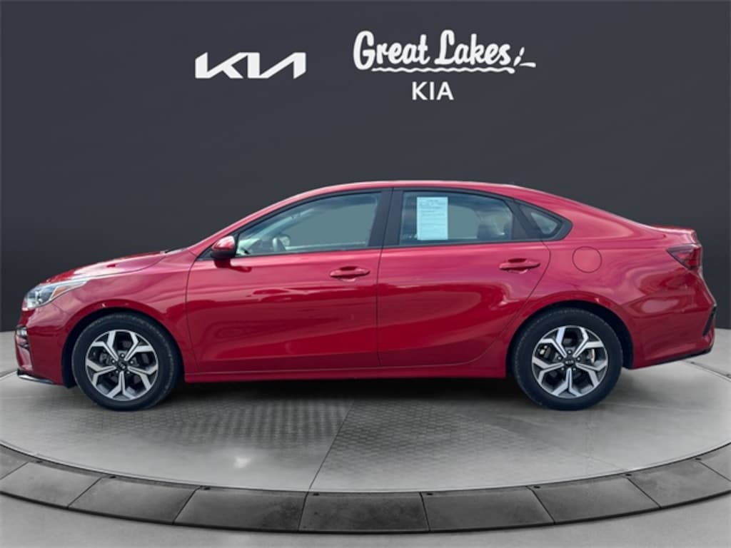 CARFAX One-Owner. Local Trade, Bluetooth/ Hands Free Calling, Apple Car Play/ Android Auto, FREE CARFAX available at greatlakeskia.com, Forte LXS, 4D Sedan, 2.0L 4-Cylinder MPI, CVT, FWD, Currant Red, Black Cloth, 4 Speakers, 4-Wheel Disc Brakes, ABS brakes, Air Conditioning, Alloy wheels, AM/FM radio, Apple CarPlay & Android Auto, Brake assist, Bumpers: body-color, Delay-off headlights, Driver door bin, Driver vanity mirror, Dual front impact airbags, Dual front side impact airbags, Electronic Stability Control, Exterior Parking Camera Rear, Front anti-roll bar, Front Bucket Seats, Front Center Armrest, Front reading lights, Front wheel independent suspension, Fully automatic headlights, Illuminated entry, Lane Departure Warning System, Low tire pressure warning, Occupant sensing airbag, Outside temperature display, Overhead airbag, Overhead console, Panic alarm, Passenger door bin, Passenger vanity mirror, Power door mirrors, Power steering, Power windows, Radio data system, Radio: AM/FM/MP3 Display Audio System, Rear reading lights, Rear window defroster, Remote keyless entry, Security system, Speed control, Split folding rear seat, Steering wheel mounted audio controls, Tachometer, Telescoping steering wheel, Tilt steering wheel, Traction control, Trip computer, Variably intermittent wipers, Wheels: 16" Machine Finish Alloy, Woven Cloth Seat Trim. 29/40 City/Highway MPG 2021 Kia Forte Currant Red LXS FWD CVT 2.0L 4-Cylinder MPI